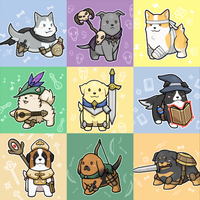 -Husky (Thief) -Rottweiler (Warrior) -Shiba Inu (Ninja) -Corgi (Monk) -Golden Retriever (Paladin) -Border Collie (Wizard) -Saint Bernard (Cleric) -Greyhound (Warlock) -Bloodhound (Ranger) -Pomeranian (Bard)